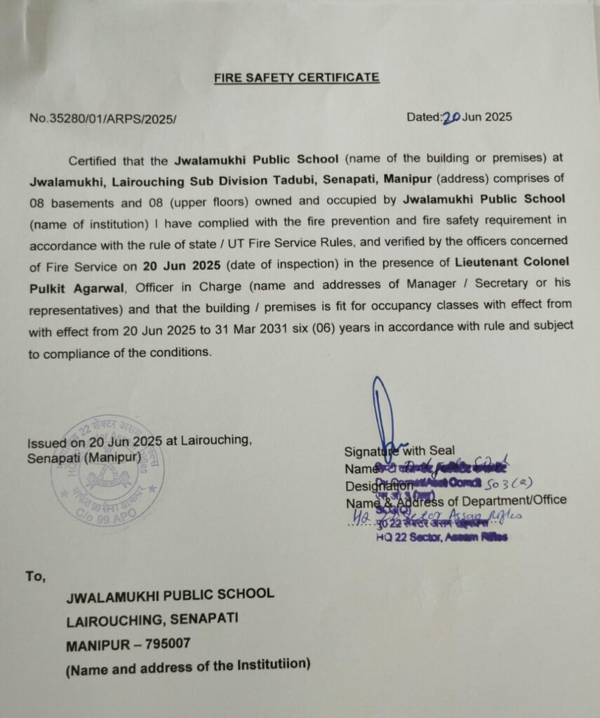 This certificate confirms that the school premises comply with all fire safety regulations and prevention measures. It ensures the infrastructure is equipped to handle emergencies, making it safe for students, staff, and visitors.