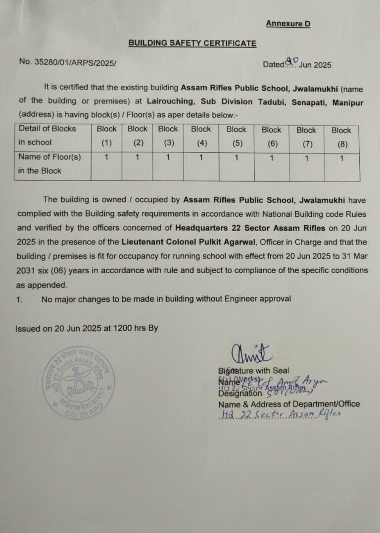 This verifies that the structural integrity of the school has been evaluated and deemed safe for operation. It confirms compliance with the National Building Code and allows the school to function lawfully without risking occupants’ safety.